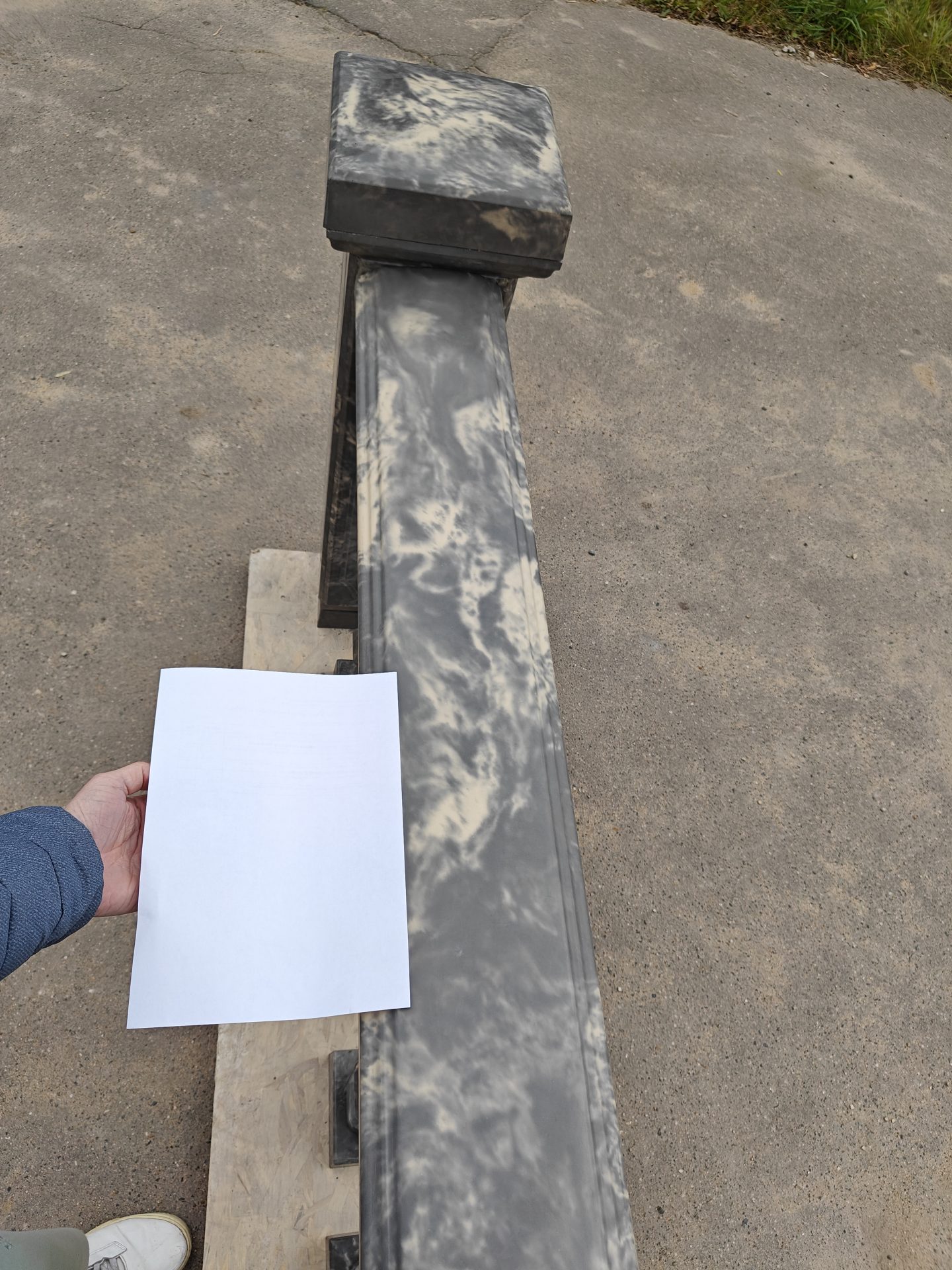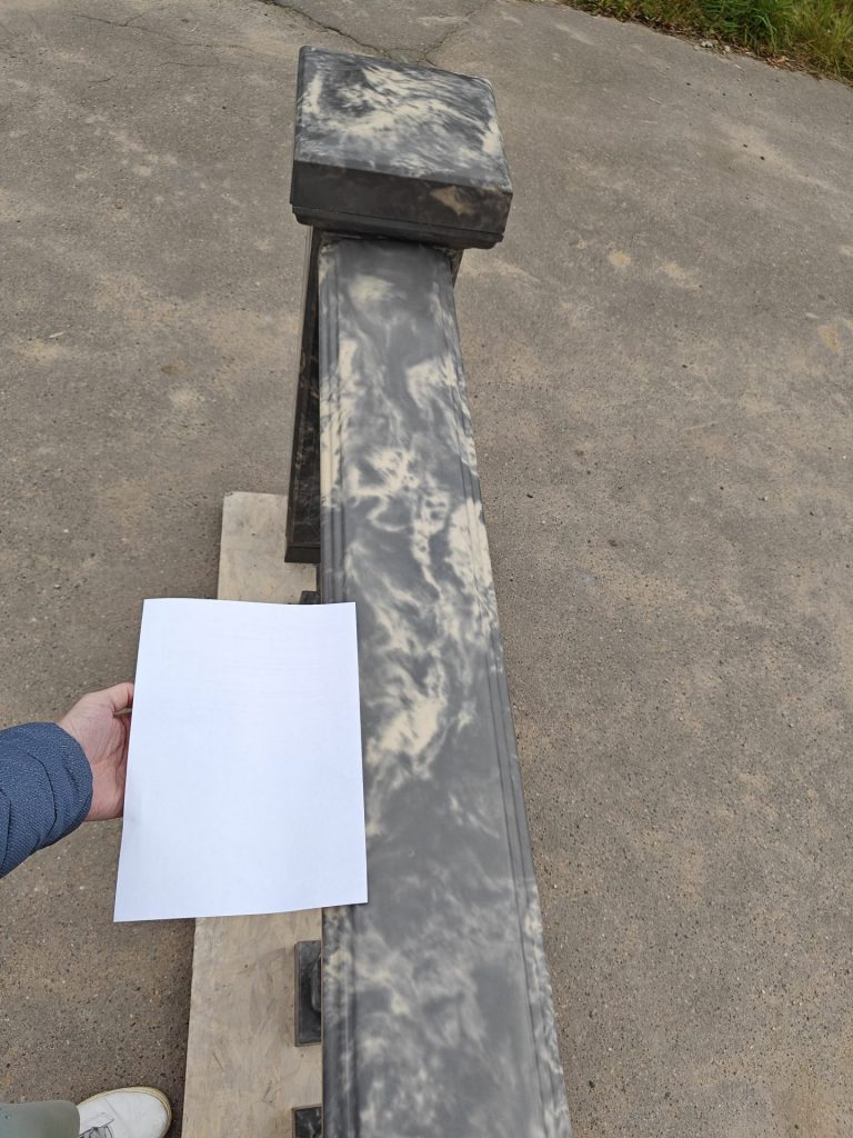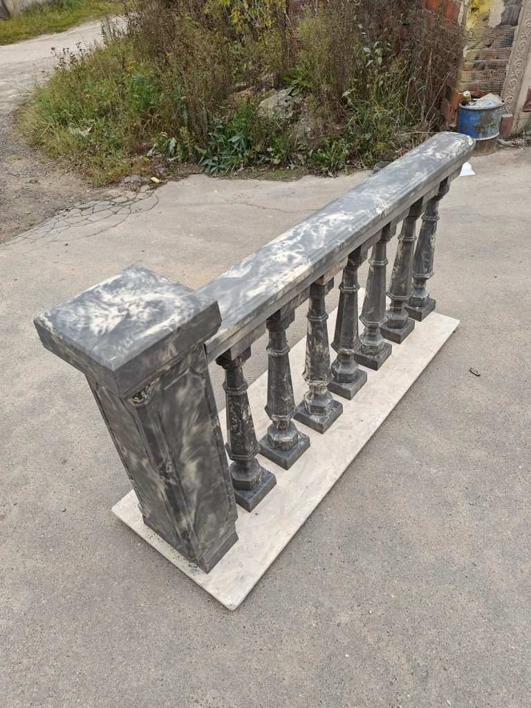 Перила для балюстрады — неотъемлемая составляющая ограждения. Устанавливается на балясины сверху, торцами крепятся к столбам или в стену при помощи анкеров. Изделия заливаются в пластиковые формы, длинной 1800 мм. Если общая длина балюстрады меньше, то просто перила отпиливаются нужной длины болгаркой по бетону. Если же общая длина больше, то перила стыкуются между собой. Остается шов, как у плитки.